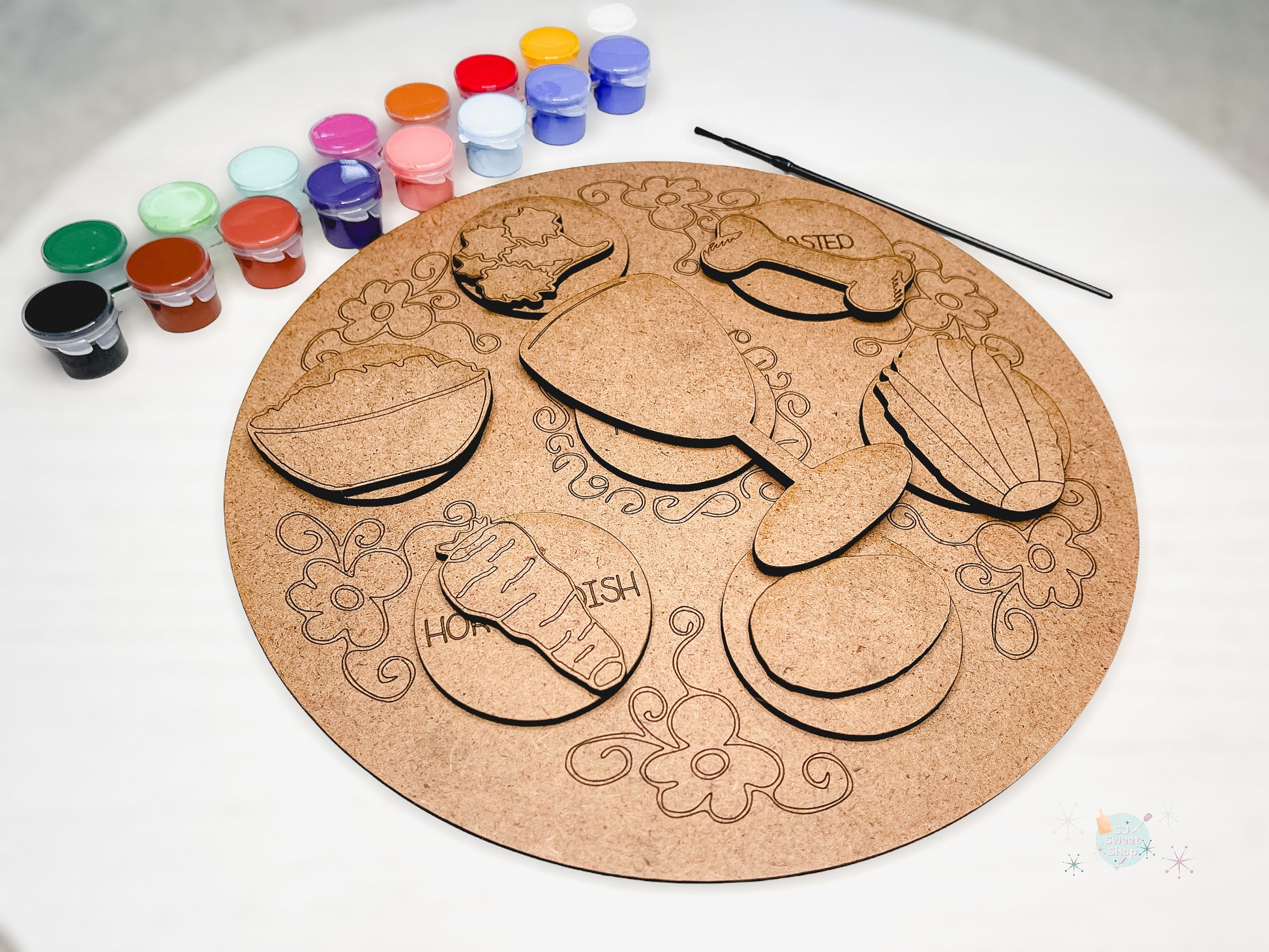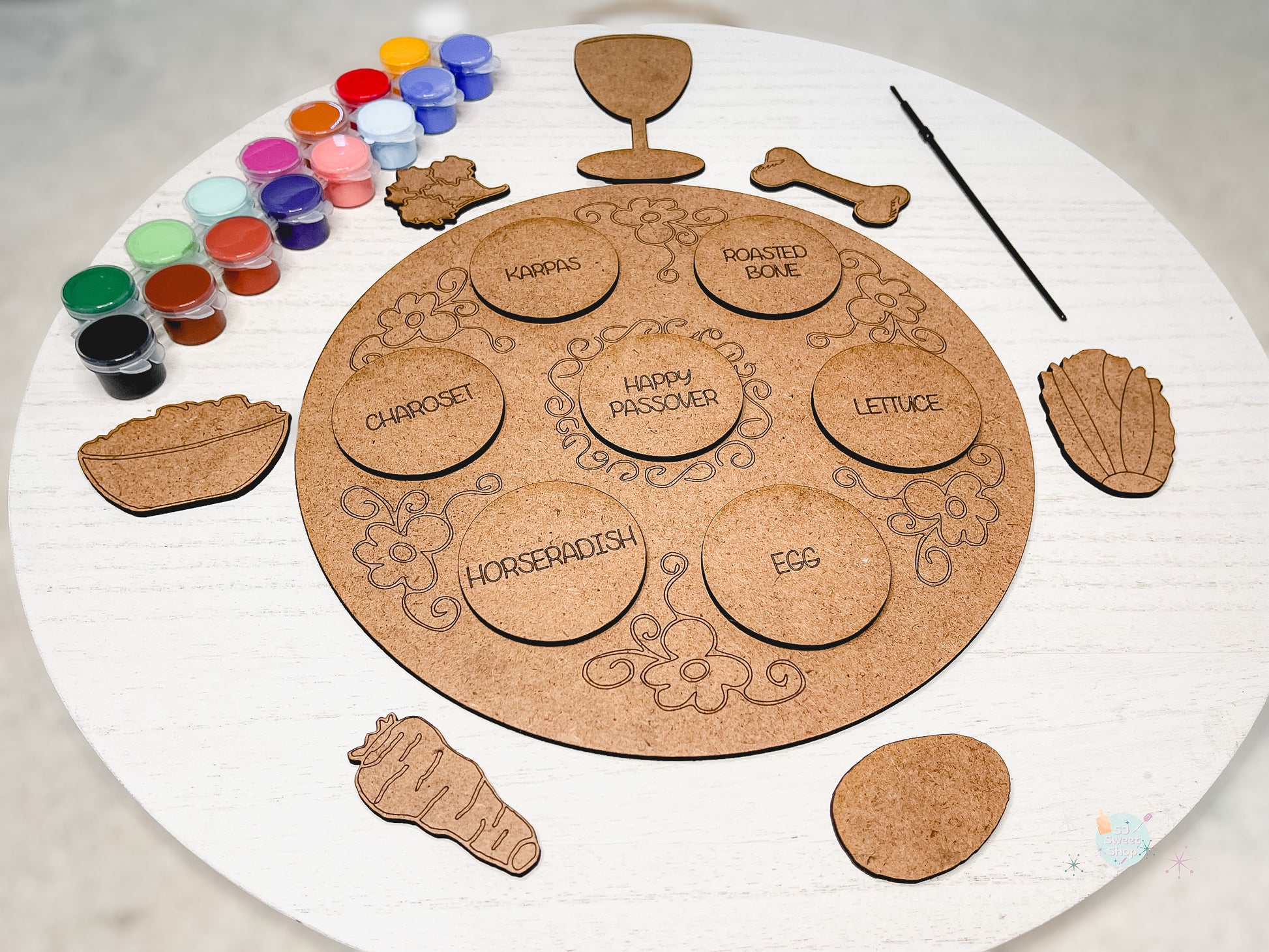 These seder plates are 10 inches and come with multiple pieces, paint, and brushes. They're the perfect for a Passover project either before or after the seder, or even during!