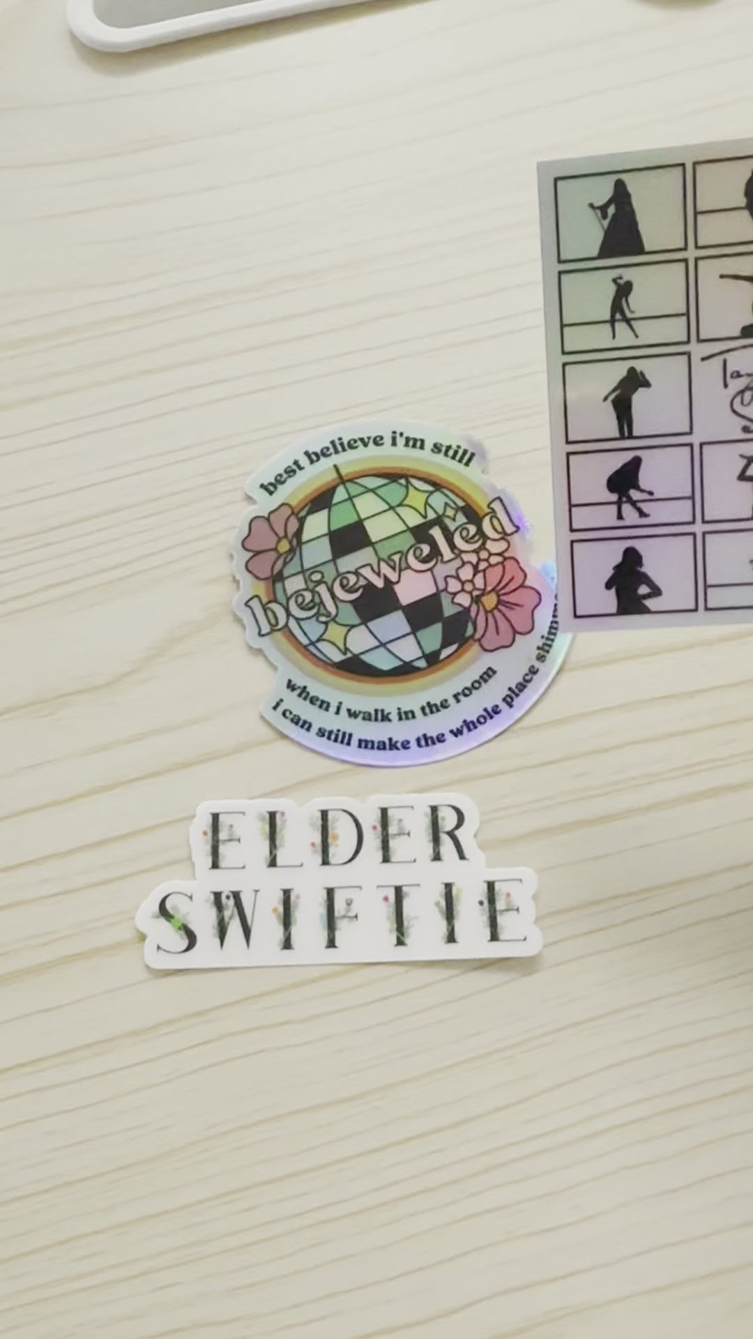 Strike a pose and grab this one-of-a-kind Tay-Slay sticker! Featuring Taylor Swift's iconic tour poses in shiny, holographic silhouettes, you'll have your friends saying "you belong with me!" every time you pop this on your laptop. Let the Eras tour live on! ⭐️