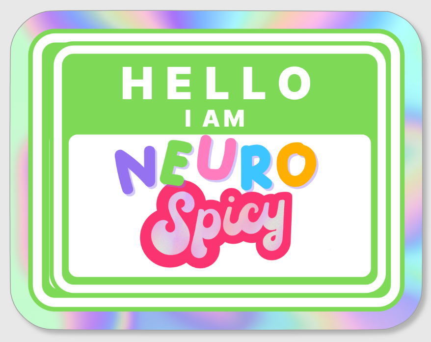 Introducing the Hello, I'm Neuro Spicy sticker. This exclusive holographic sticker for the Sticker Crew is sure to add a unique and eye-catching sparkle to any space. The vibrant colors and holographic effect offer a fun and stylish way to show your personality and style.