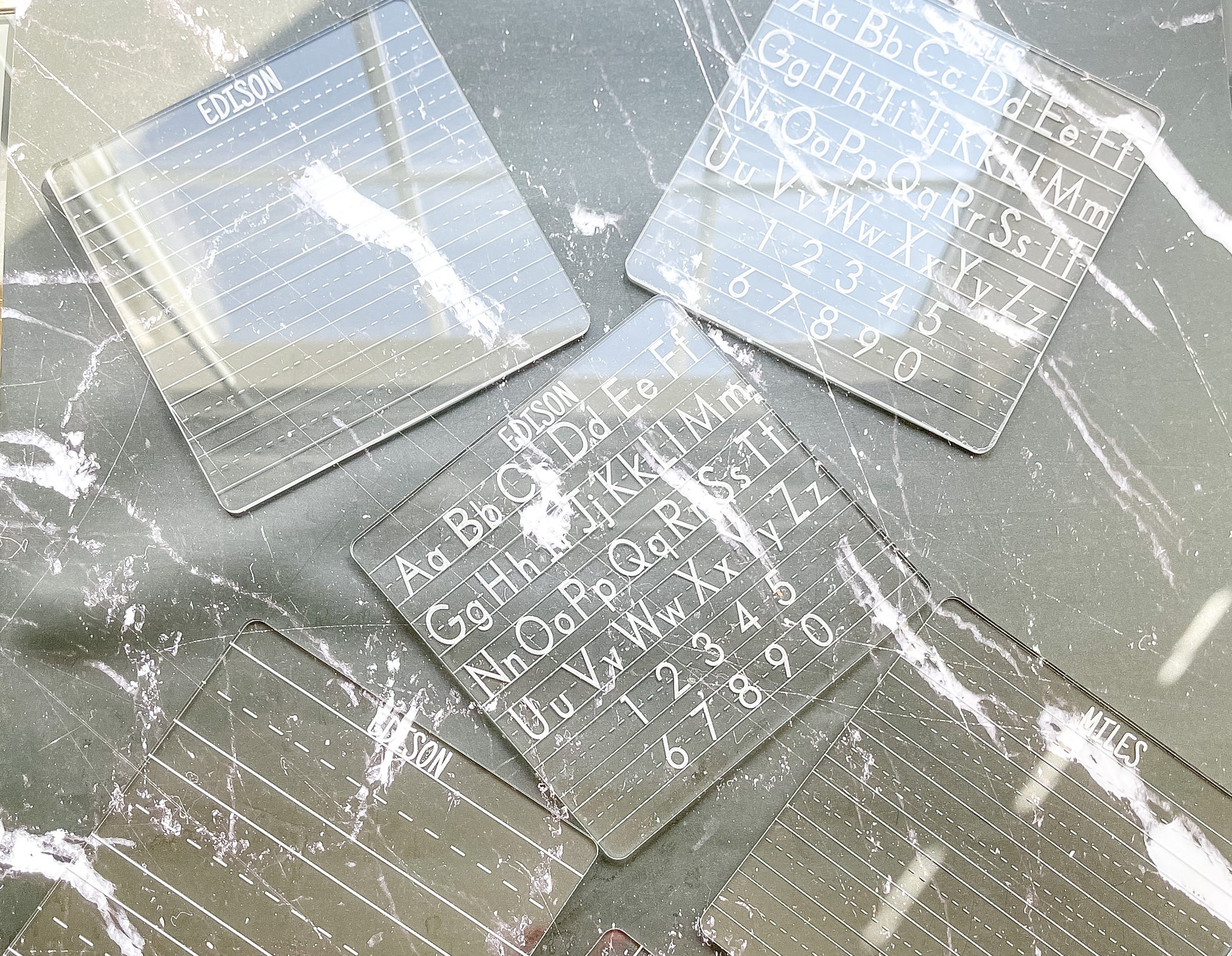 These are wonderful boards for kids who are learning to write, anyone who wants to practice lettering, or for families on the move who want a fun activity for the kids in the car or at a restaurant or appointment.