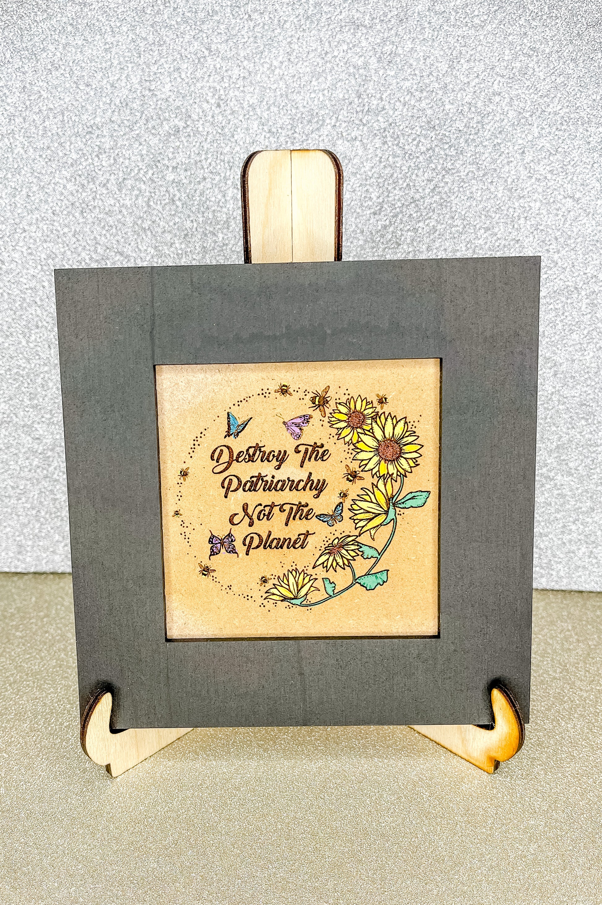 This is a 5x5 all wood piece that has been engraved and hand painted. Each one also comes with an easel stand to make sure you can display the piece anywhere you'd like.