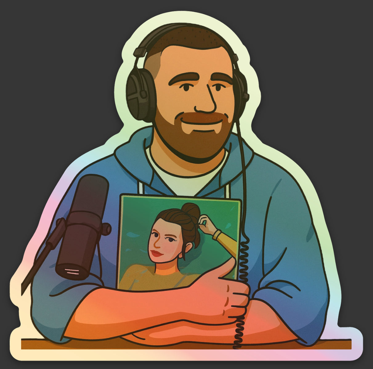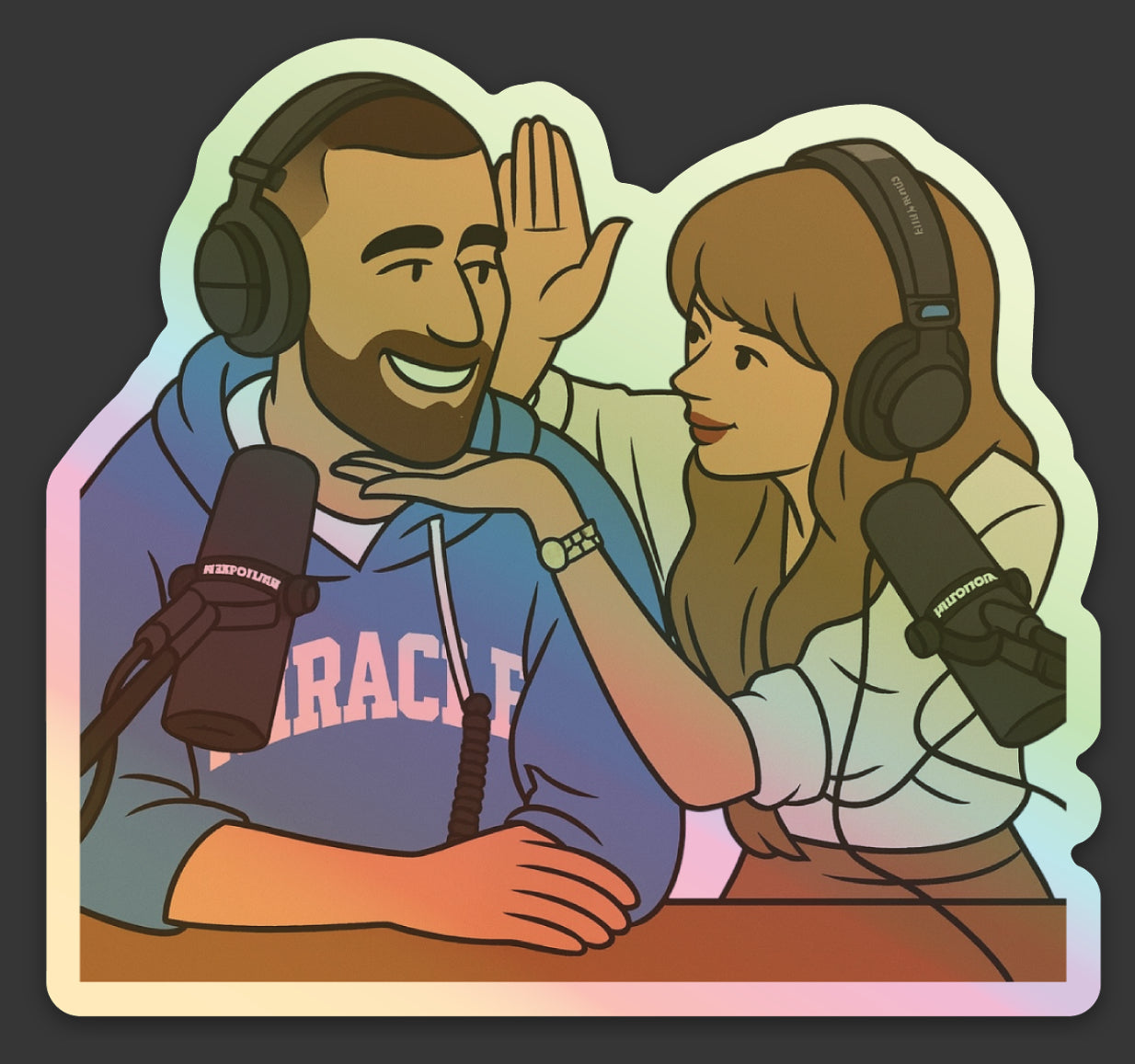 "Take your fandom to new heights with our TayVis Sticker Bundle! Featuring holographic stickers from the Taylor/Travis album announcement episode of the New Heights podcast, this collection captures all the iconic moments in one fun bundle. Show off your love for the podcast and your favorite artists with these quirky and playful stickers. (Limited stock, don't miss out!)"
