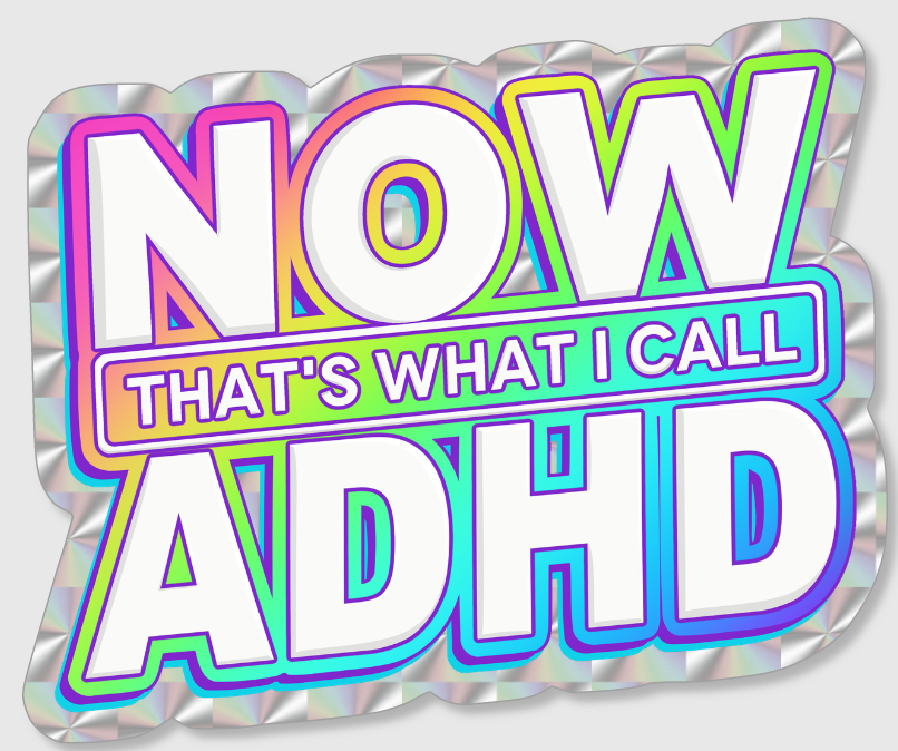 The Now That's What I Call ADHD sticker is exclusively available from the Sticker Crew. This prismatic sticker features the bold, eye-catching phrase, "Now That's What I Call ADHD," ideal for expressing your unique personality.