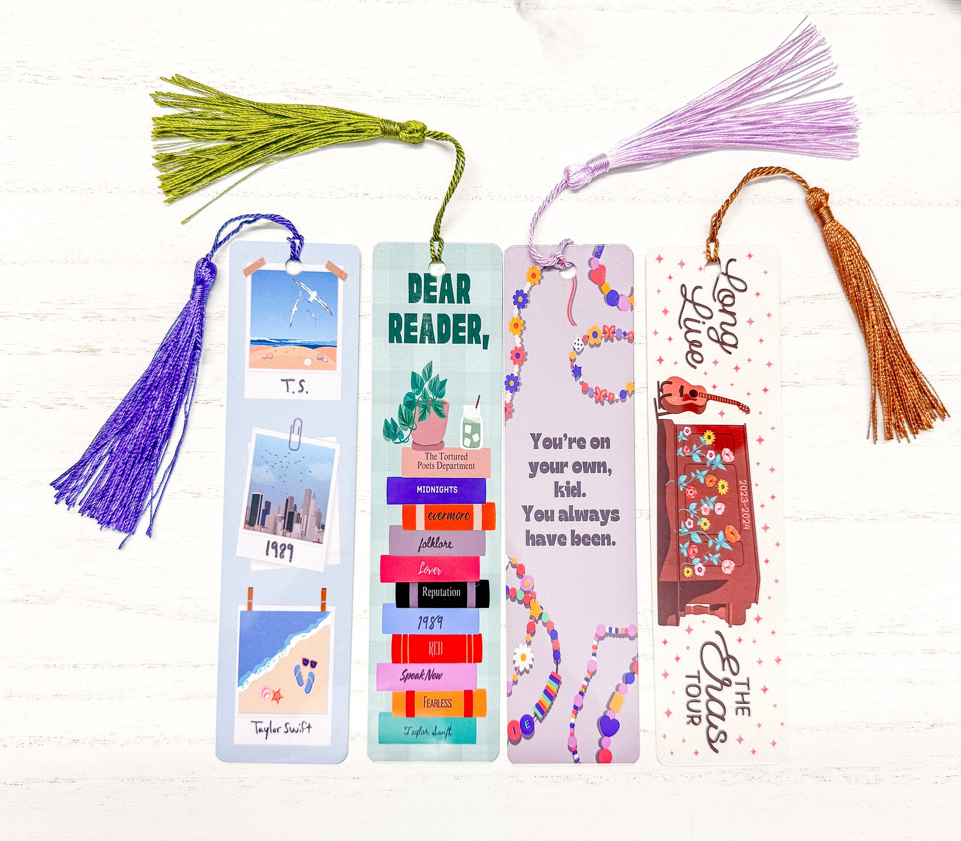 Turn your reading into a musical experience with our Taylor Swift themed sublimated bookmarks! Made with durable metal, each bookmark represents a different era of Taylor's iconic career. From 1989 to the Eras Tour, find your perfect match and add a playful touch to your books. Long live the power of reading!
