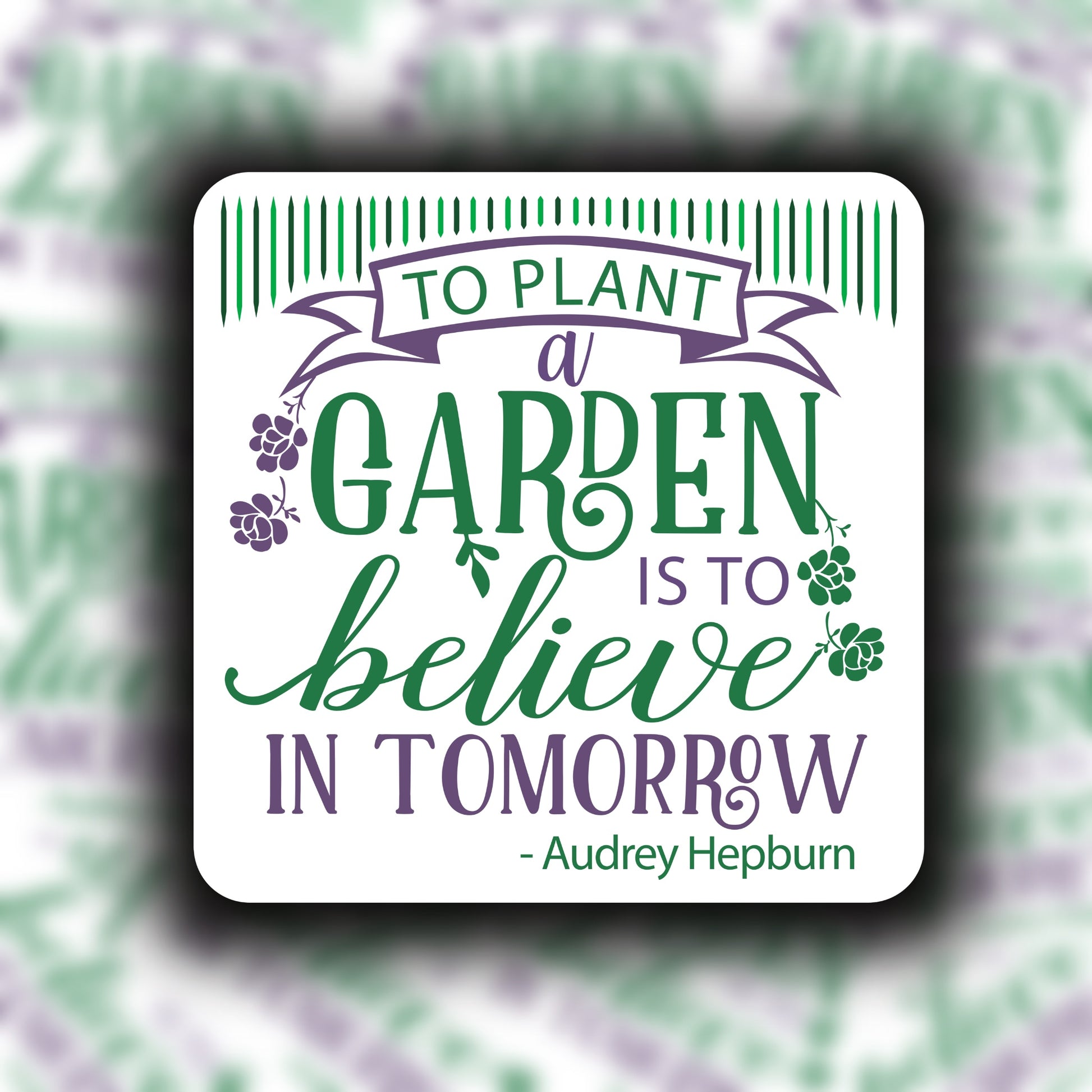 "To Plant a Garden is to Believe in Tomorrow" - Audrey Hepburn. This is my absolute favorite quote because it speaks to me so deeply. You don't plant a garden if you don't think you'll be here tomorrow to tend to it, so it means that you have hope for another day. I made this water-resistant sticker as a daily reminder to myself and others that we can always have hope for a new day.