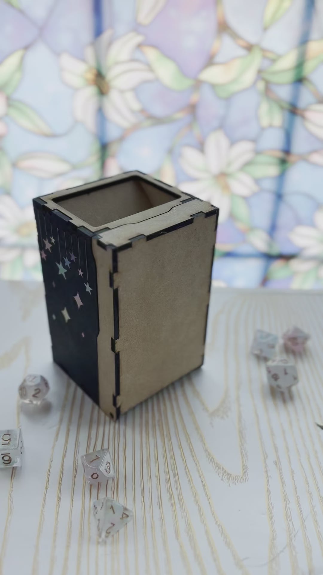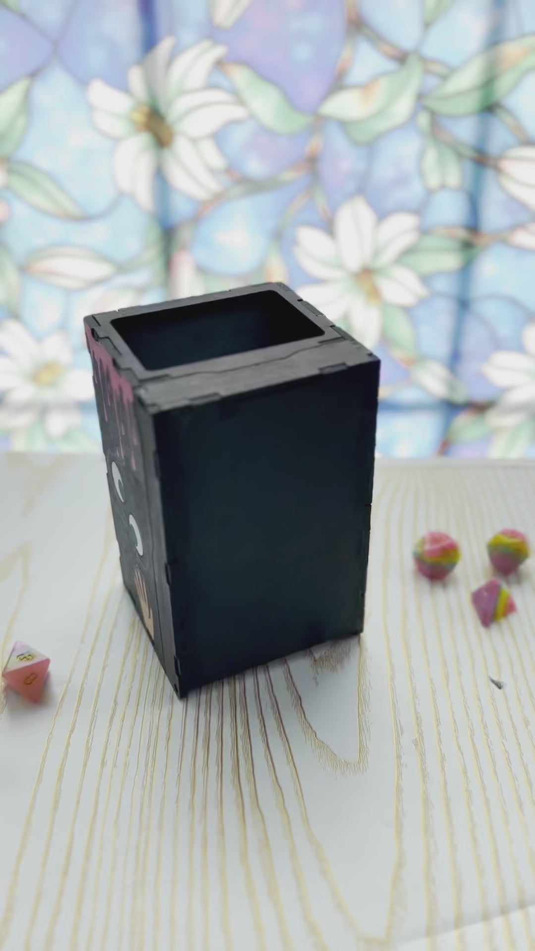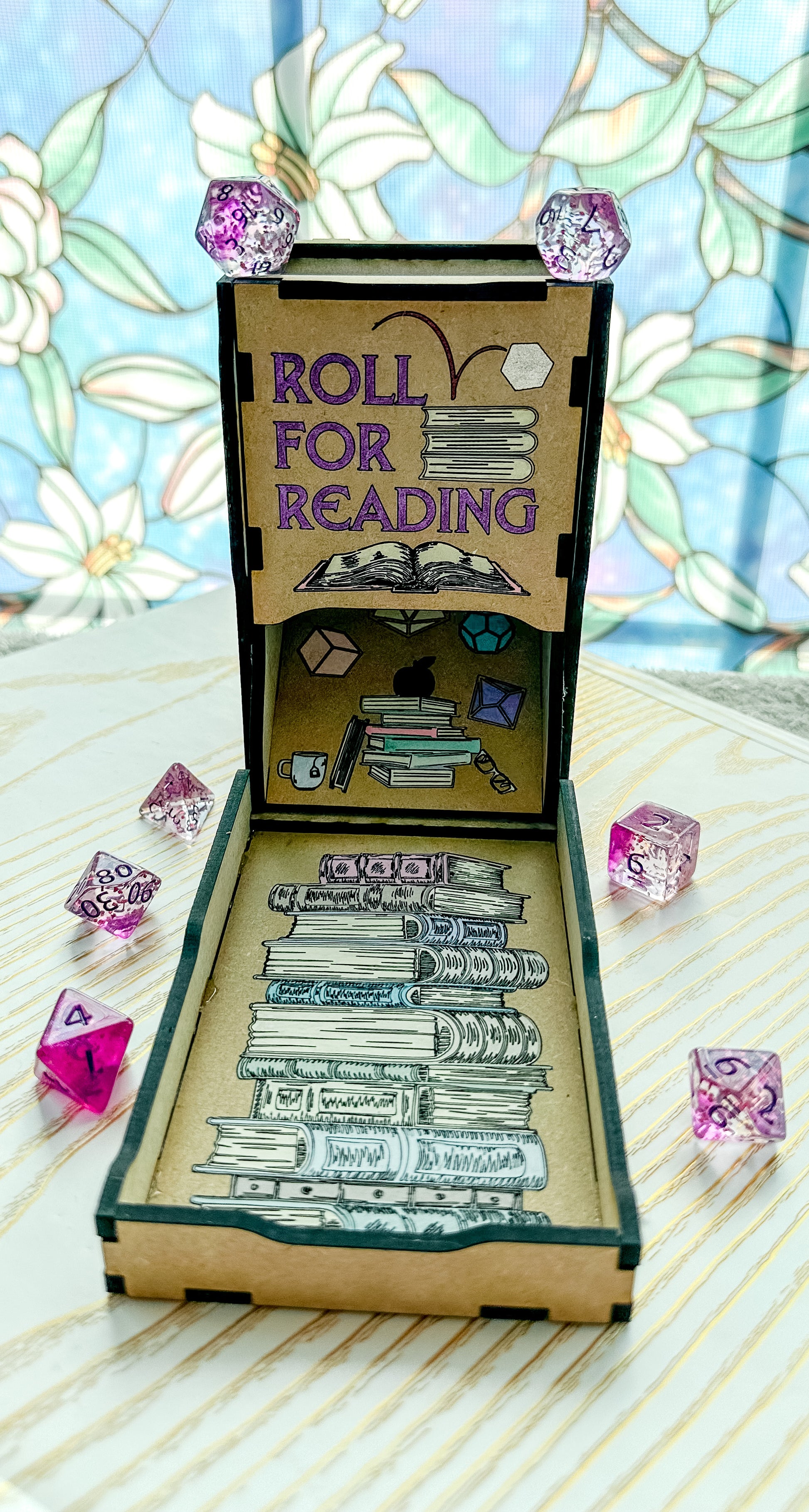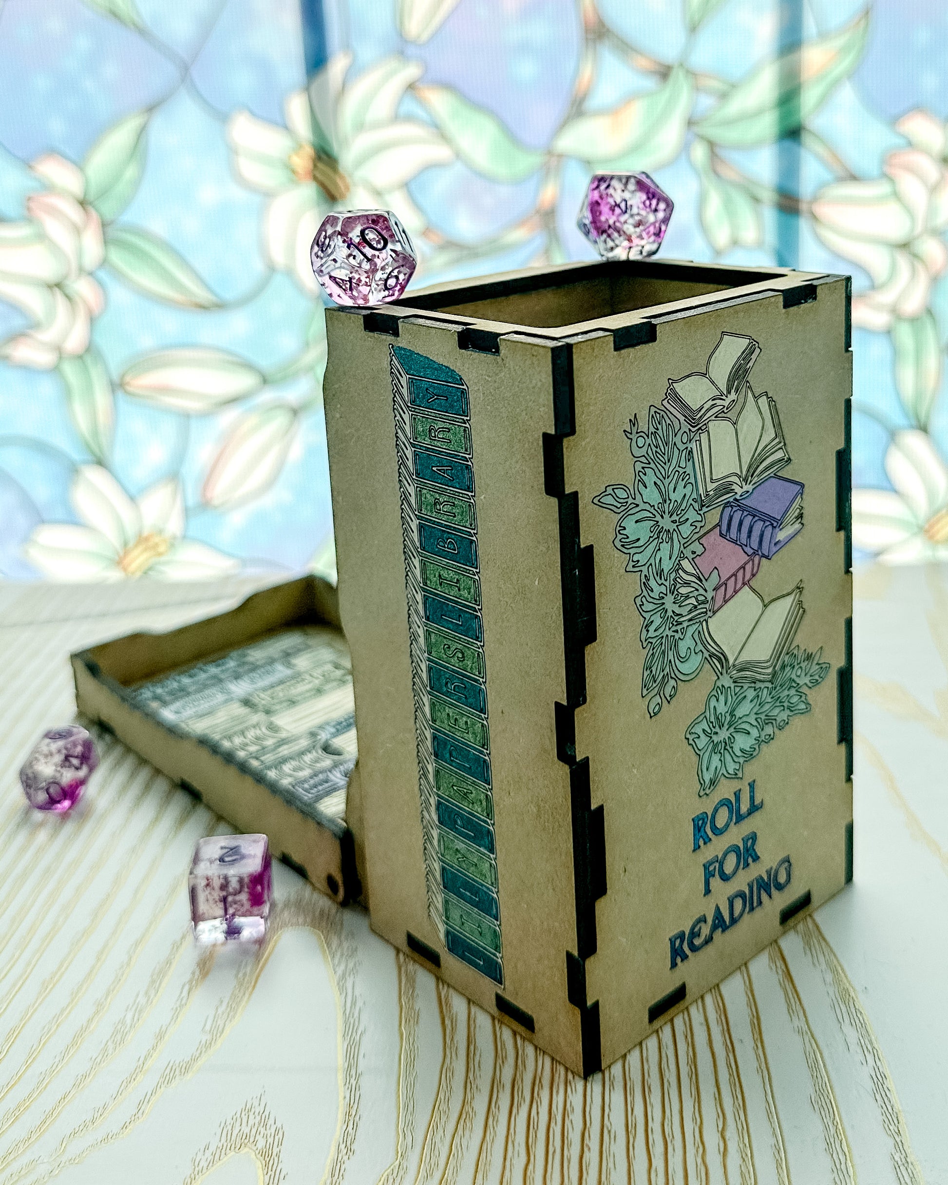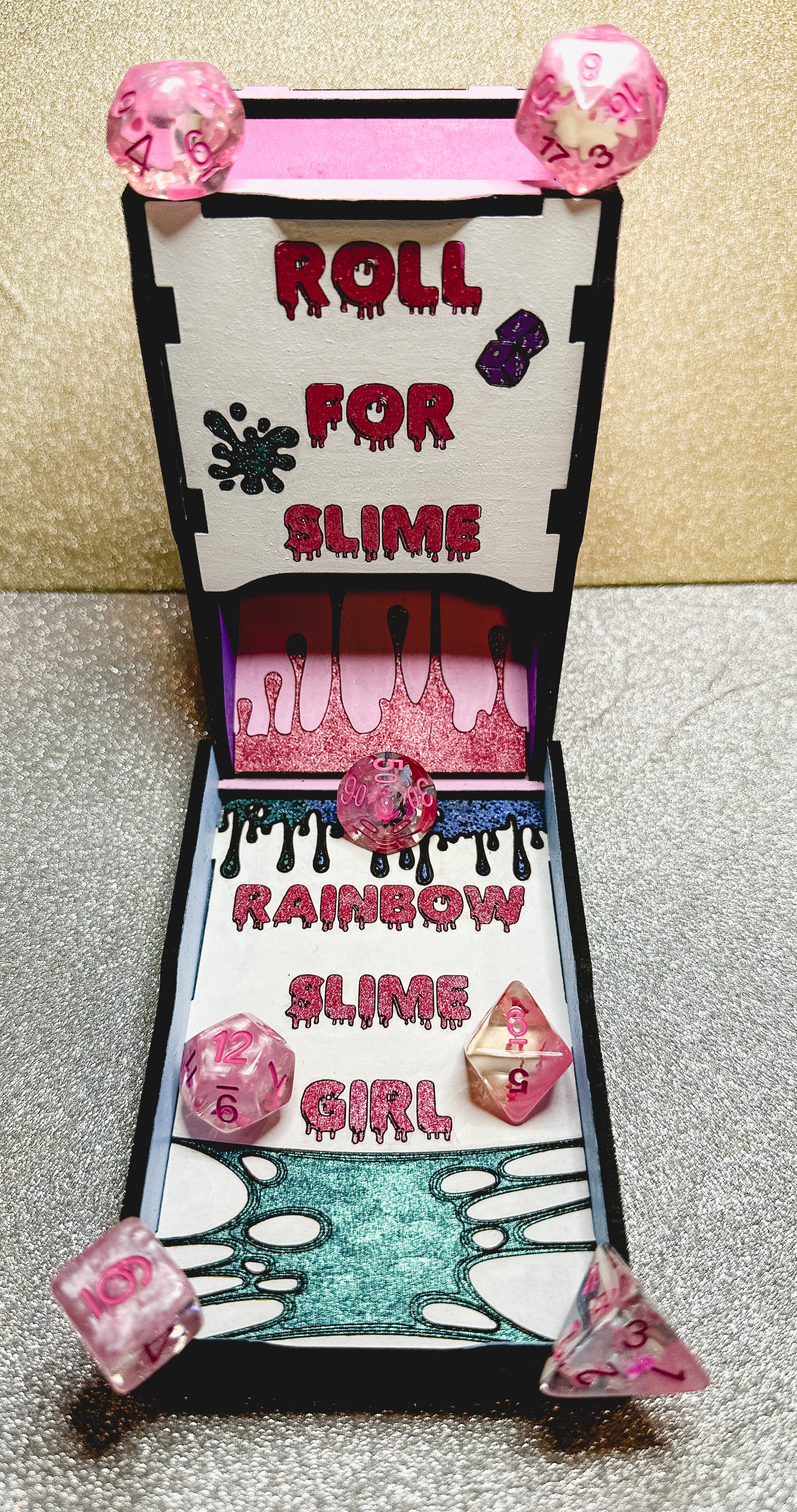 Roll in style with this one-of-a-kind custom dice tower! Hand painted and laser engraved, this tower will set you apart at your next game night (make sure to practice your coolest dice-throwing moves!). Plus, you'll get a matching set of dice to complete the look. Nothing says "I mean business" like your own personal dice tower!