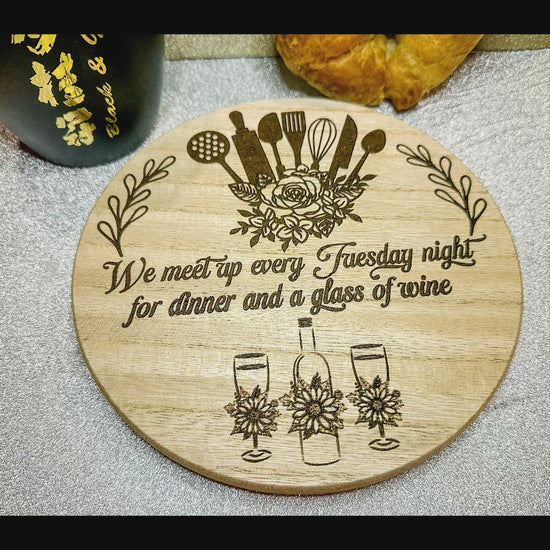 This handcrafted custom-engraved Lazy Susan is sure to add elegance to any decor. Featuring a 6" diameter wooden surface, it can be engraved with any design you choose. Its timeless style and function make it the perfect addition to a dining table, kitchen, office, or other space.